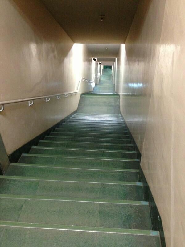「この階段、しゃべりながらはきつい。ハァ、ハァ」。